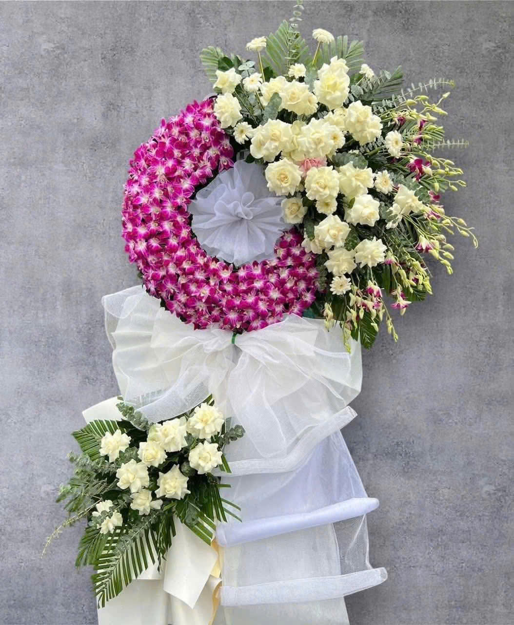 Hoa viếng đam tang sang trọng là một tác phẩm hoa đẹp và trang trọng, thường được sử dụng trong các buổi lễ viếng. Việc sử dụng hoa viếng sang trọng thể hiện lòng tôn trọng và tri ân đối với người đã khuất và là một cách để động viên và an ủi gia đình trong những khoảnh khắc khó khăn. Hãy đặt mua hoa ở Hoa Tươi Hải Phòng để được giao hoa tận nơi miễn phí.
