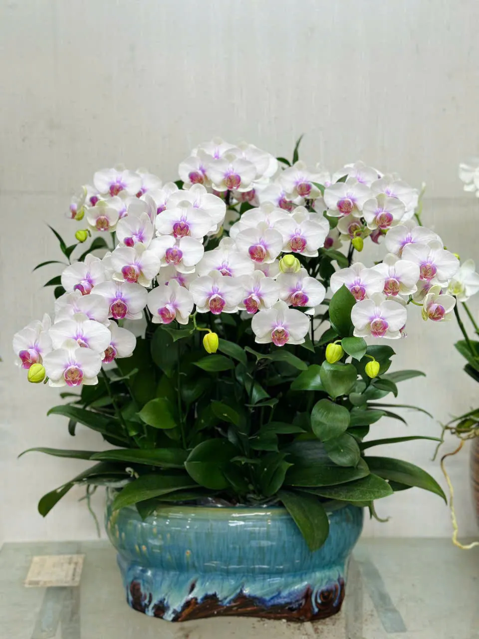 Chậu lan hồ điệp hồng được kết hợp hài hòa bởi màu hoa và các phụ kiện. Những nhà thiết kế đã lựa chọn những cành hoa đẹp nhất, mập mạp và khỏe mạnh nhất. Lá cây có độ dày vừa phải. Cây đang ở độ tuổi đẹp nhất. Cây lan hồ điệp màu hồng được trồng trong chiếc chậu sứ màu trắng vừa đẹp vừa sang trọng.