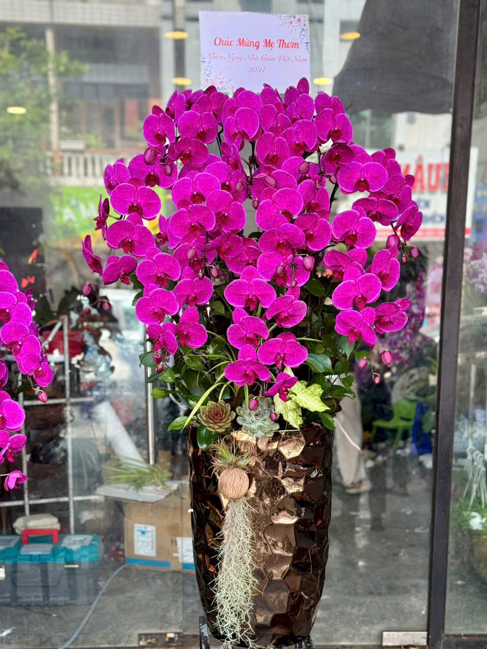Lan hồ điệp tím chúc mừng là chậu hoa chúc mừng mang nét đẹp sang trọng. Ý nghĩa của sự may mắn, phát đạt của màu tím hoa hồ điệp. Chậu lan hồ điệp tím cũng là món quà hoàn hảo để quý khách tặng cho đối tác làm ăn hay sếp trong các sự kiện lớn…