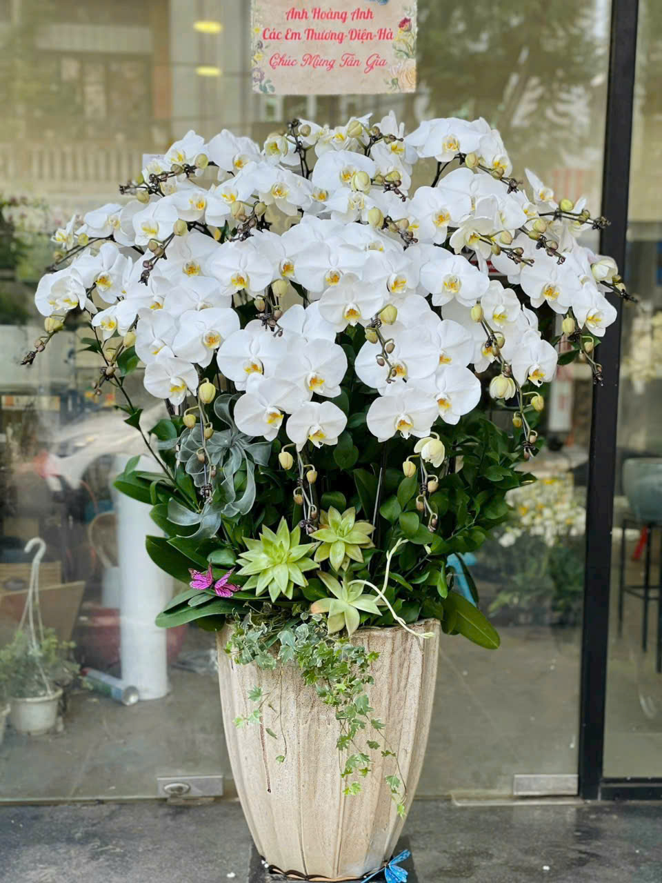 Vì vẻ đẹp của Hoa lan nên người ta mệnh danh là nữ hoàng của các loài Hoa. Và còn gì tuyệt vời hơn nếu Bạn tận tay trao vẻ đẹp ấy đến với người yêu thương. Chậu lan hồ điệp trắng là một món quà không gì tuyệt vời hơn dành tặng những người thân yêu, tặng đối tác, tặng khách hàng, tặng đồng nghiệp nhân dịp đặc biệt ở tại Hải Phòng
