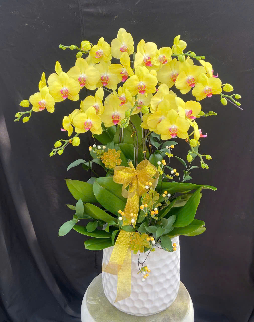 Màu vàng của cánh lan cũng mang lại không khí ấm cúng, hạnh phúc cho gia đình bạn. Đó sẽ là món quà ý nghĩa để tặng bạn bè, người thân của bạn.