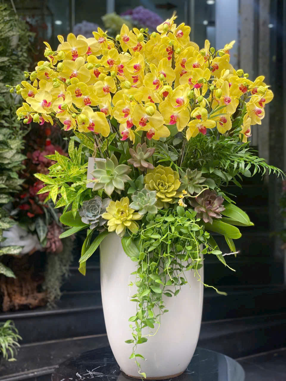 Màu vàng của cánh lan cũng mang lại không khí ấm cúng, hạnh phúc cho gia đình bạn. Đó sẽ là món quà ý nghĩa để tặng bạn bè, người thân của bạn.