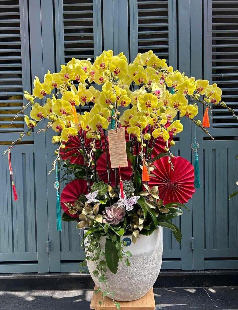 Chậu hồ điệp vàng mang theo nắng xuân trang trí cho ngôi nhà của bạn thêm quyến rũ. Màu vàng quyến rũ như sưởi ấm căn nhà bạn trong những ngày giá rét.